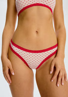 The Micro Thong in Hearts blends smooth microfiber with delicate lace trim for a look that’s both playful and practical. Designed with a low-rise fit and minimal back coverage, this thong disappears under clothing for an invisible finish, while the heart print adds a fun, feminine touch.