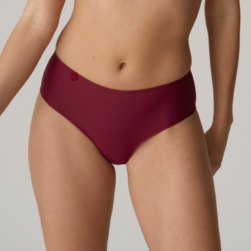 These hot pants have a low rise. This style reveals a hint of your bottom at the back and has a seamless finish. This dark color appears to float between pink and red. It is an intense hue with a fresh, youthful appeal that is very flattering against the skin. Easy to mix & match, and perfect for bringing a splash of color to your winter looks.