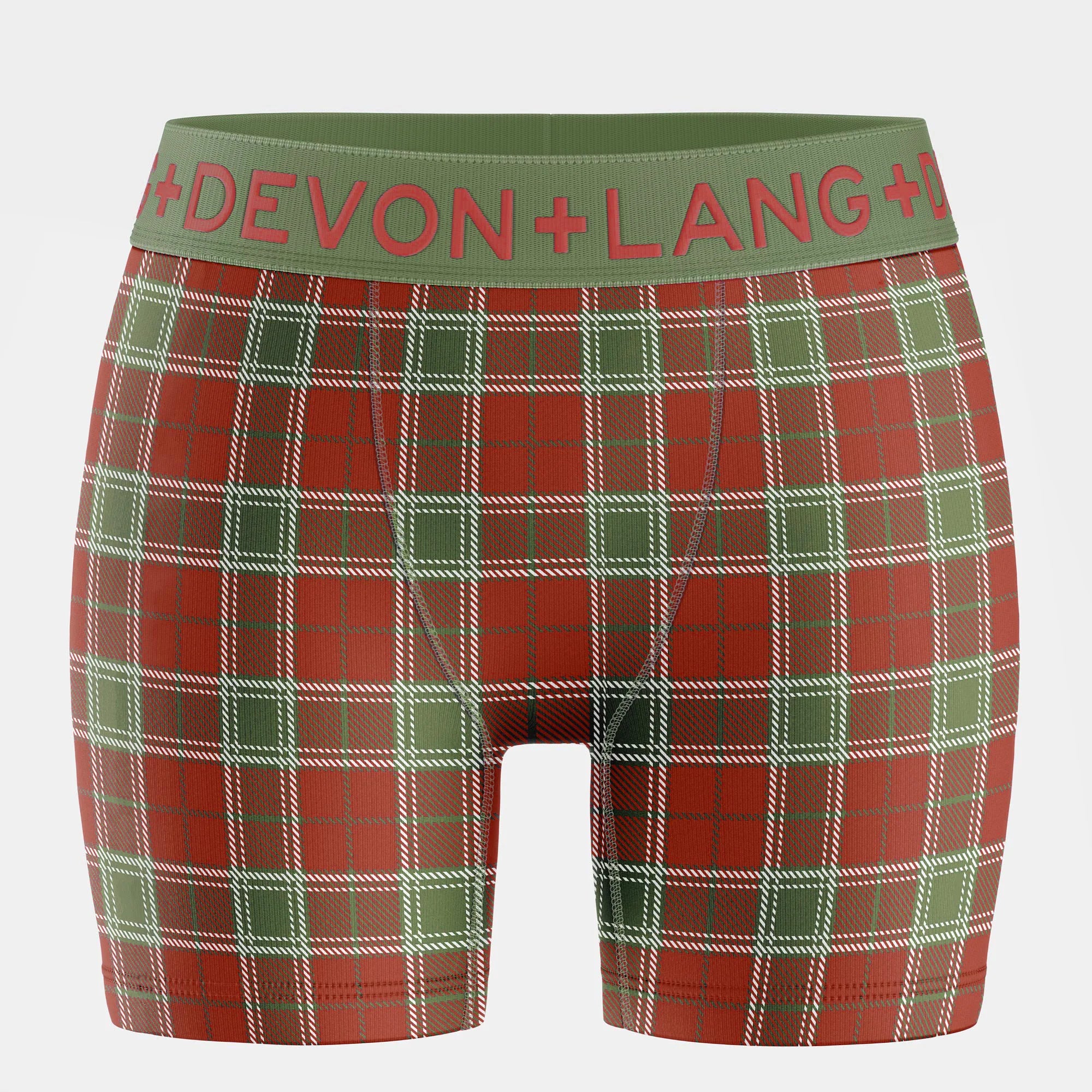 The Devon + Lang Bria Women’s Boxer Brief in Vintage Tartan brings festive charm to your favourite anti-chafe essential. Designed with a 5" inseam for smooth, stay-in-place coverage, this high-rise boxer brief is made from an ultra-soft modal-blend fabric that feels breathable and lightweight all day long. The no-mesh construction keeps the fit clean under clothing, while the classic red-and-olive tartan print adds a cozy, nostalgic touch to your everyday rotation.
