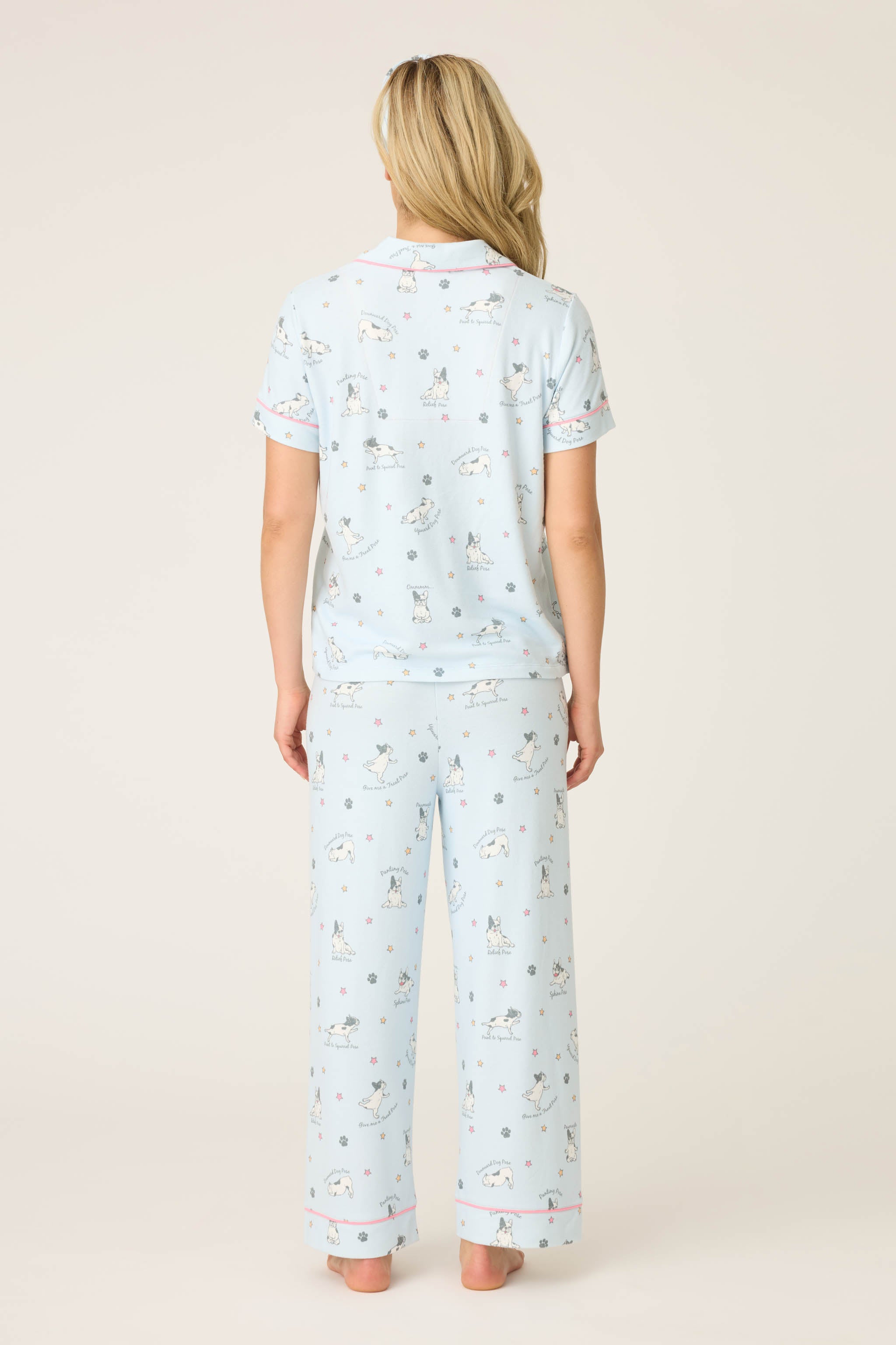 Made from PJ Salvage’s signature soft fabric, this buttery PJ set features an adorable paw print and calming affirmations in a misty blue tone that soothes the senses. The relaxed fit, button-down top, and matching shorts create the perfect balance of feel-good comfort and playful charm.
