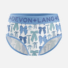 The Devon + Lang Bria Bikini Brief delivers soft, breathable comfort in a flattering mid-rise silhouette. Crafted from an ultra-soft modal-blend fabric, this everyday essential offers gentle stretch, a stay-put waistband, and a smooth, no-mesh design that disappears under clothing. The lightweight feel and clean finish make it an effortless choice for daily wear, no matter the print or colour.