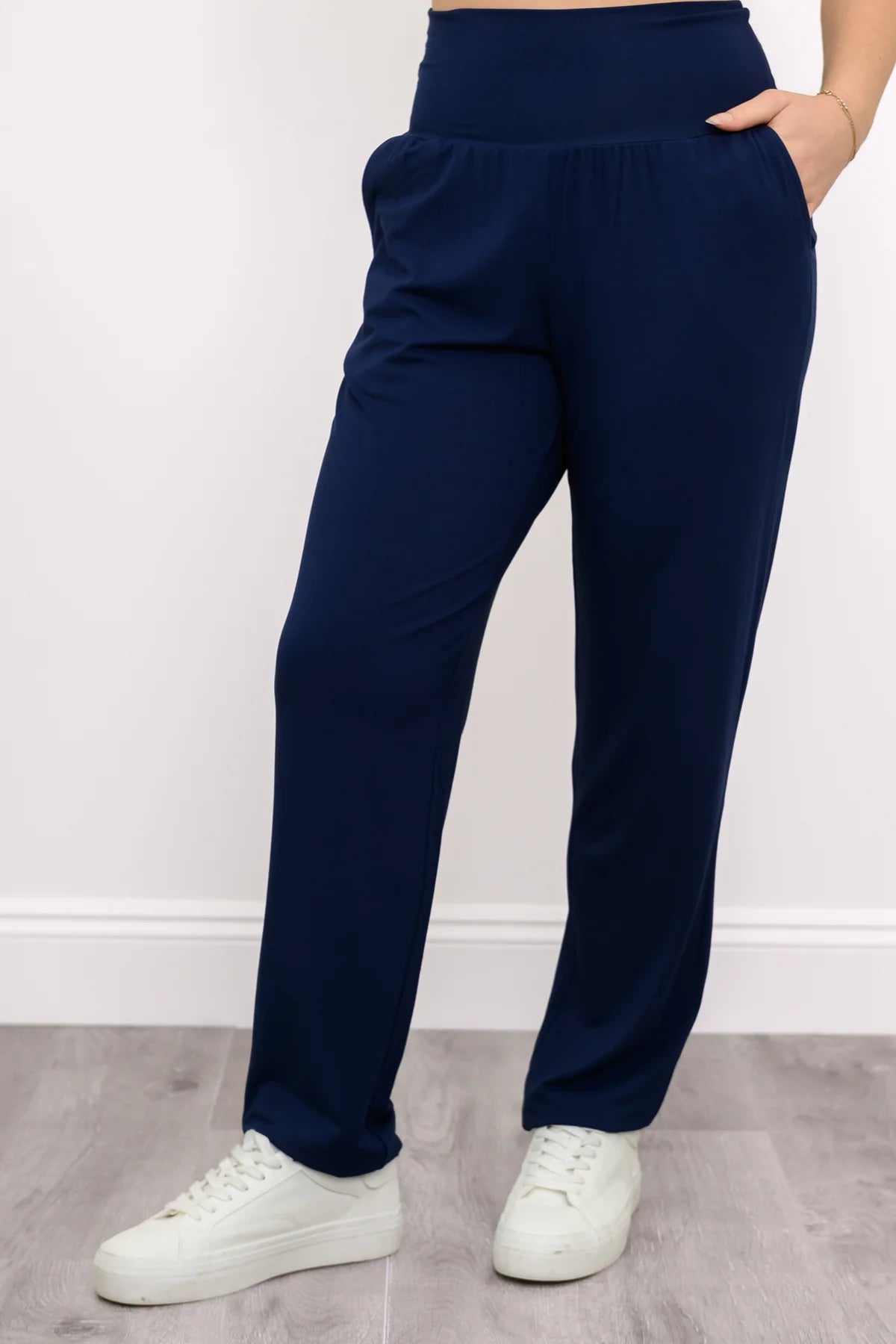 - Wide pull-on waistband for flexible, customizable styling
