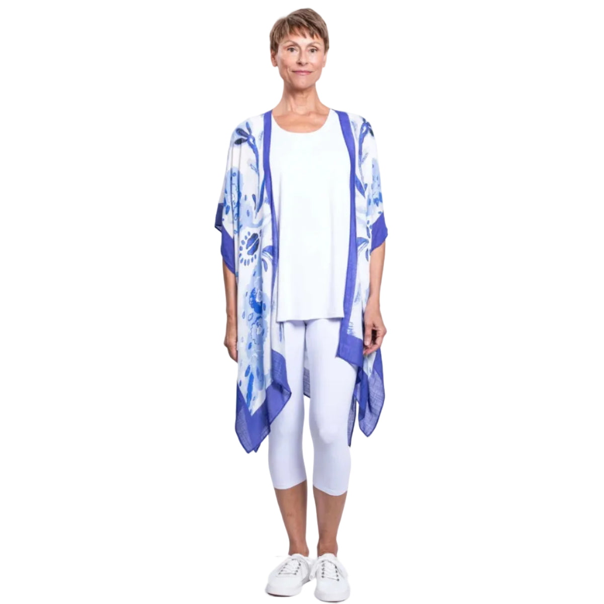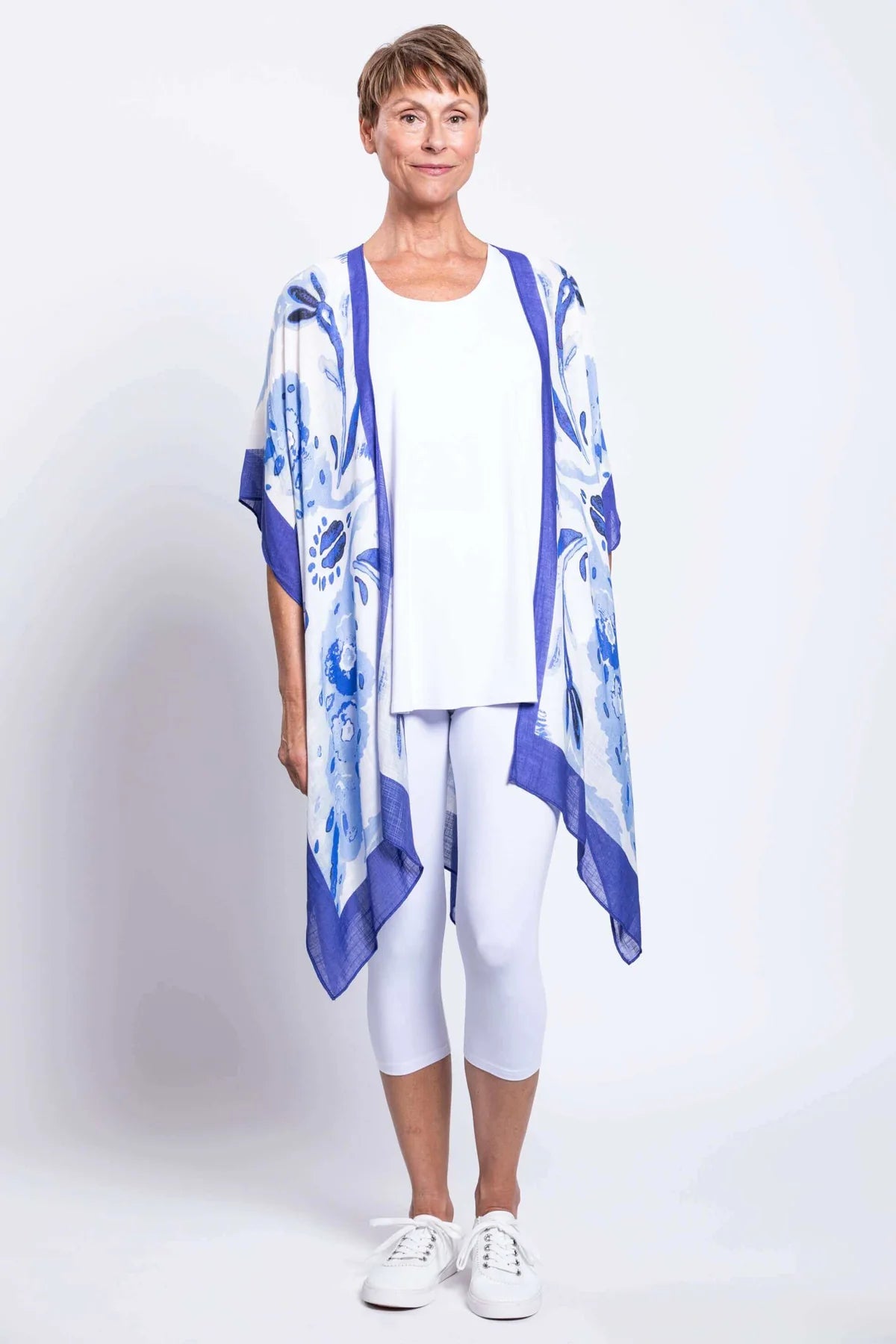 The Darcy Kimono in Indigo Breeze from Blue Sky Clothing is the perfect lightweight layer to elevate any outfit. Featuring an intricate blue-and-white print with a softly draped silhouette, this kimono adds instant elegance while remaining easy and relaxed.