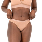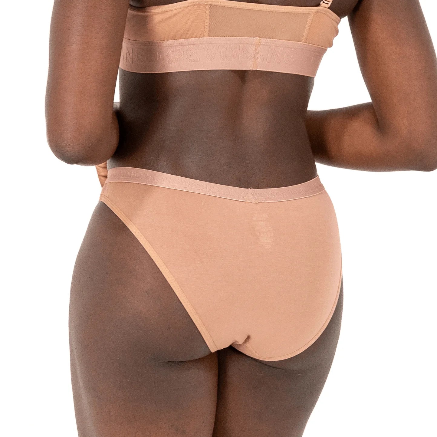 The Devon + Lang Katrina French Bikini offers a beautiful blend of everyday comfort and feminine styling. Crafted from an ultra-soft modal-blend fabric, this mid-rise bikini features a French-cut leg that elongates the silhouette while providing breathable, gentle coverage. With a smooth no-mesh design, flat seams, and a soft, stay-put waistband, this style is all about comfort that still feels effortlessly pretty.