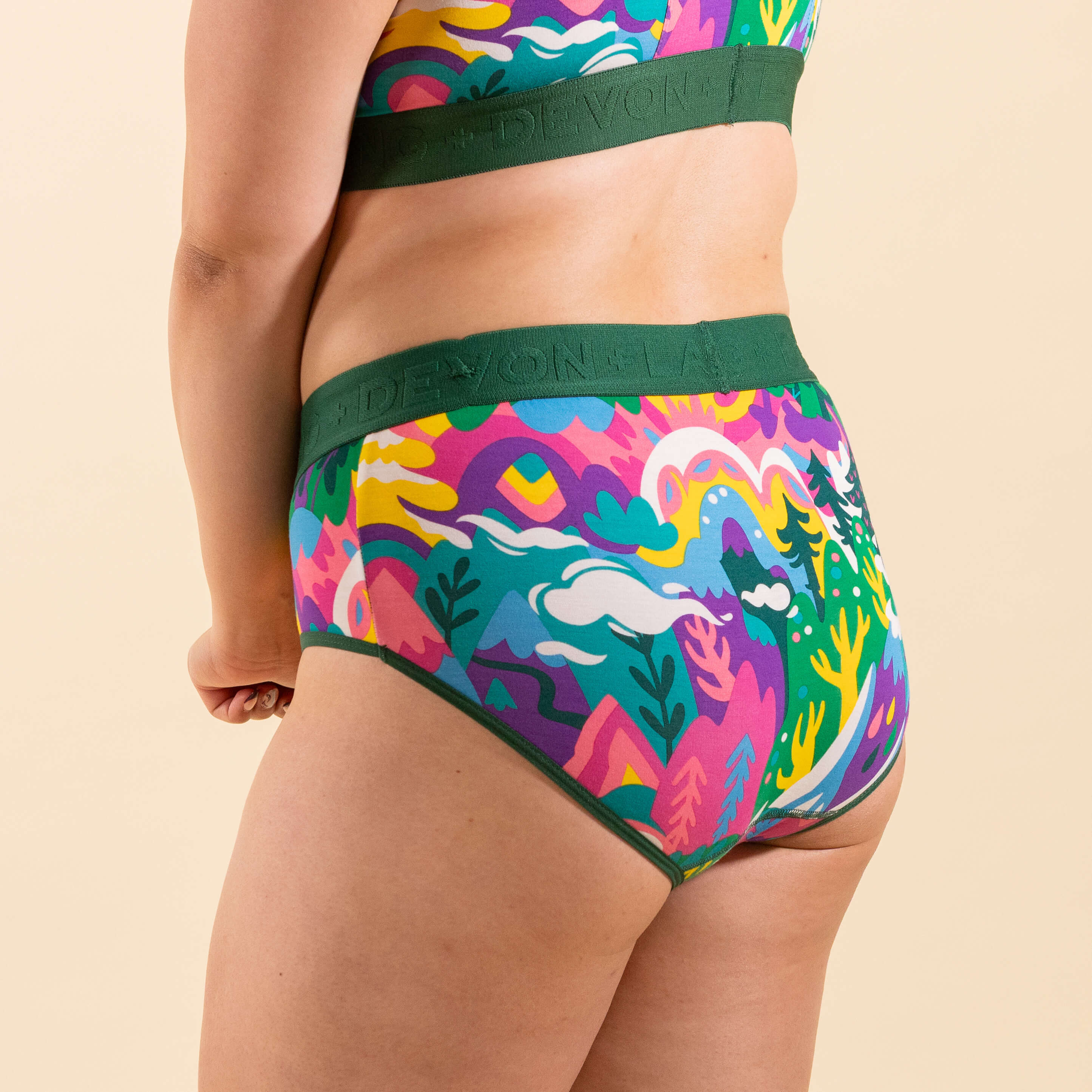The Devon + Lang Bria Bikini Brief delivers soft, breathable comfort in a flattering mid-rise silhouette. Crafted from an ultra-soft modal-blend fabric, this everyday essential offers gentle stretch, a stay-put waistband, and a smooth, no-mesh design that disappears under clothing. The lightweight feel and clean finish make it an effortless choice for daily wear, no matter the print or colour.