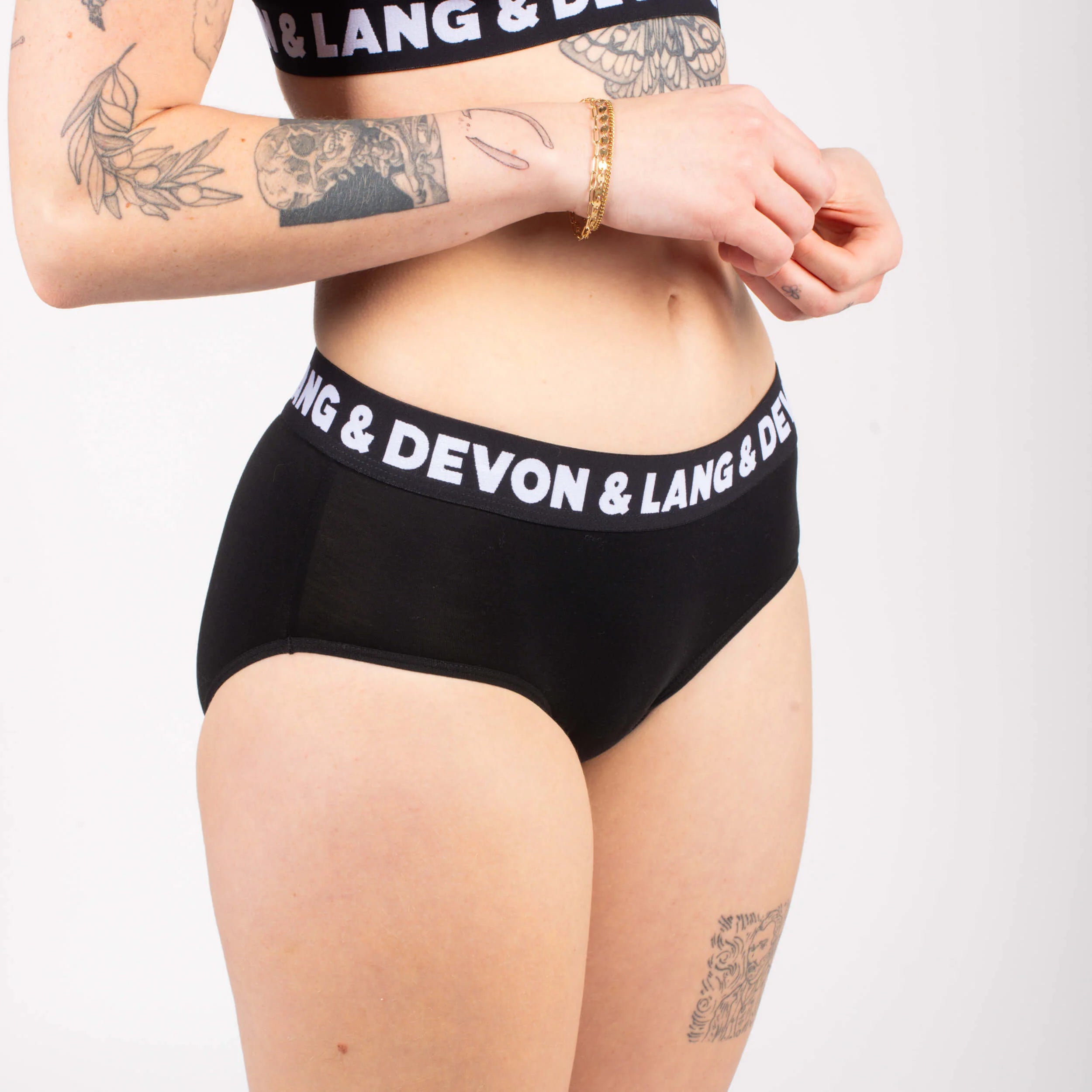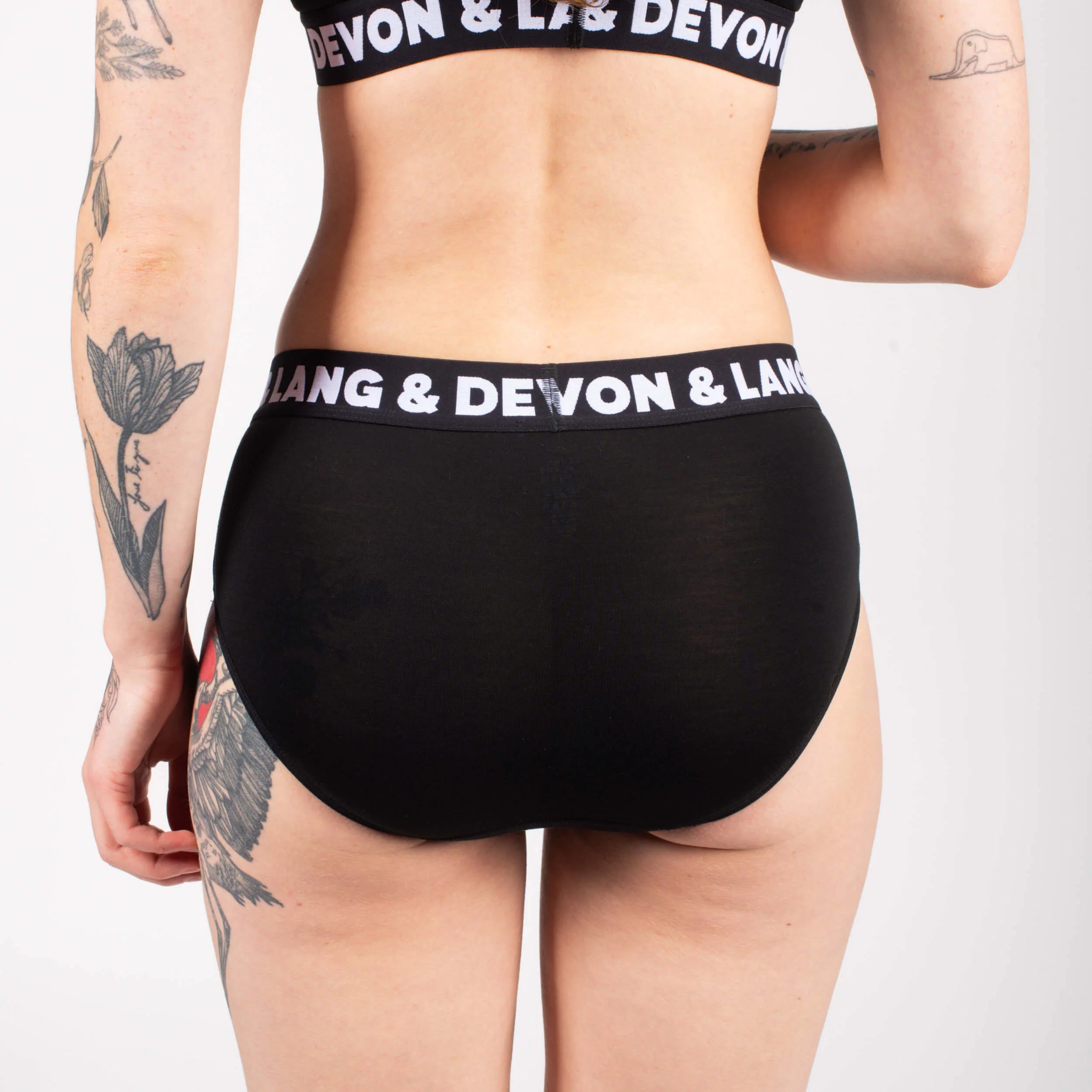 The Devon + Lang Bria Bikini Brief delivers soft, breathable comfort in a flattering mid-rise silhouette. Crafted from an ultra-soft modal-blend fabric, this everyday essential offers gentle stretch, a stay-put waistband, and a smooth, no-mesh design that disappears under clothing. The lightweight feel and clean finish make it an effortless choice for daily wear, no matter the print or colour.