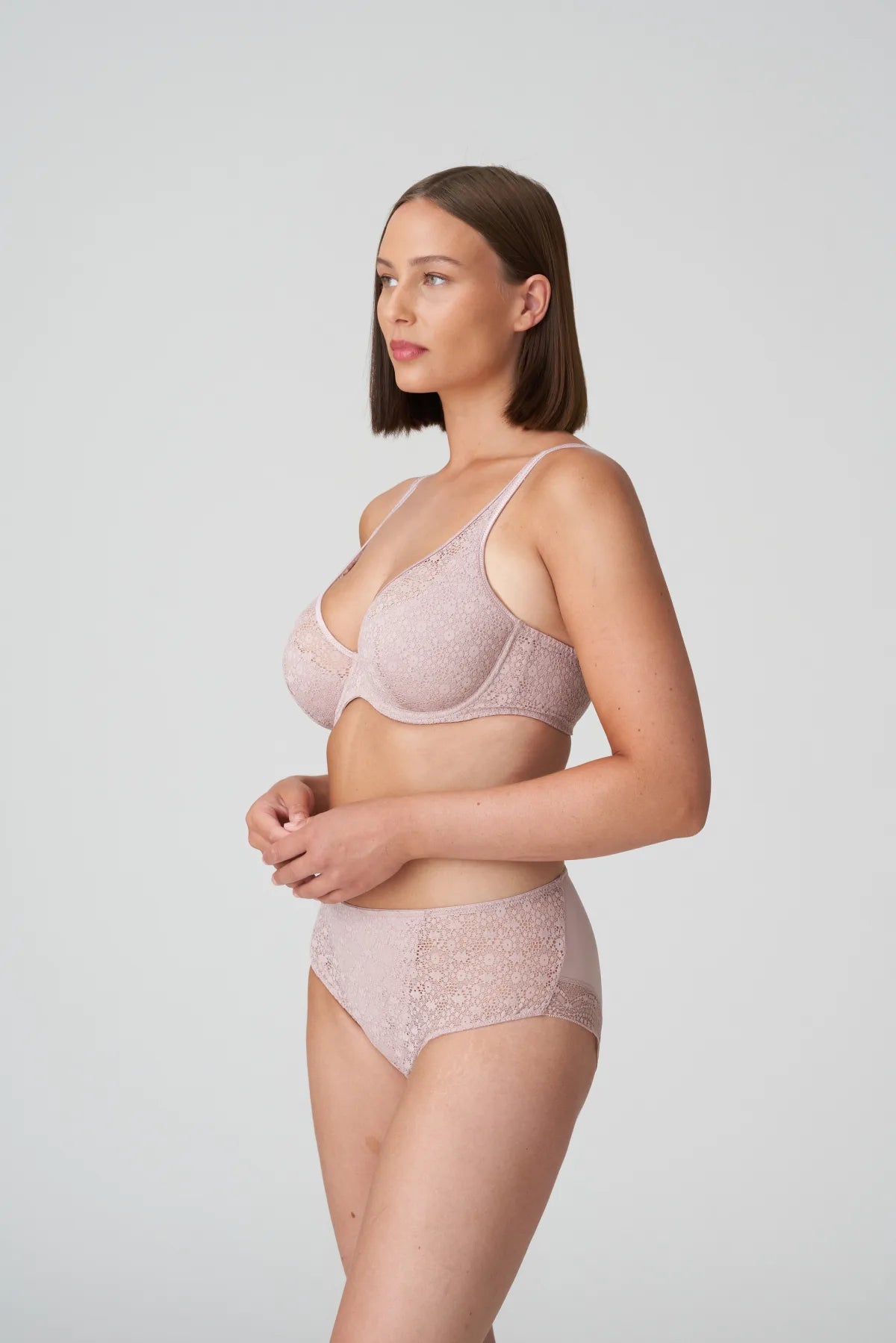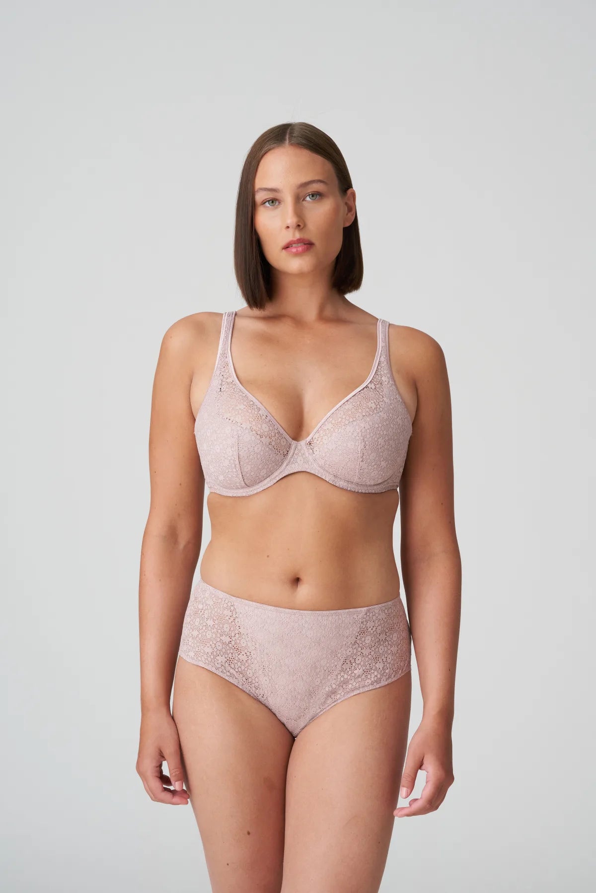 All-over vintage eyelash lace on the straps and the back, a stylish triangle cut, and plunging cups: