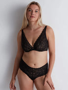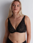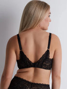 Slip into this striking black lace bra and embrace a look that’s equal parts confidence, comfort, and French allure.