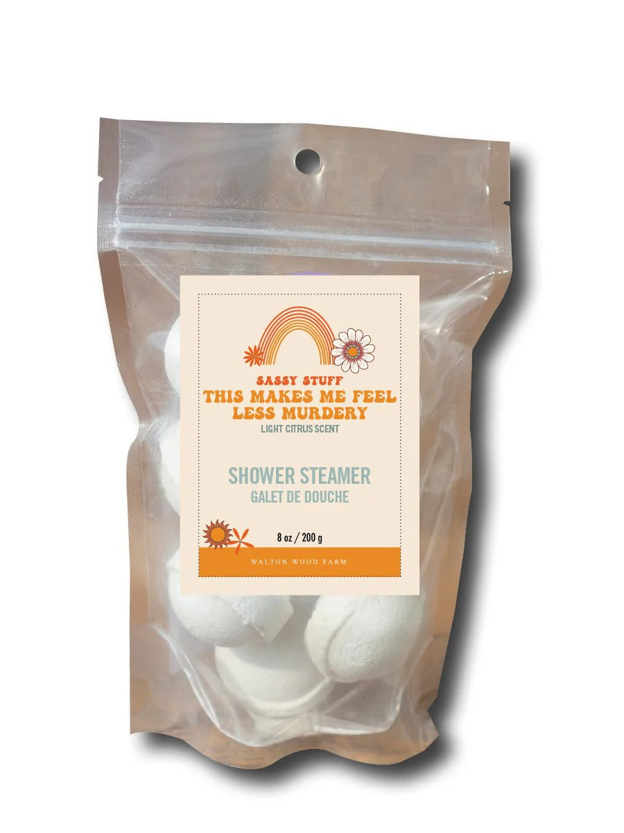 The next time life turns you into a potential suspect for a fictional crime novel, just turn on the shower, drop in a "This Makes Me Feel Less Murdery" Steamer, and let the relaxation wash over you. Because, let's face it, we all need a little less murdery and a lot more "I've got this" in our lives. Cheers to washing away the chaos, one steamy revelation at a time! SLS, Paraben and Dye Free.