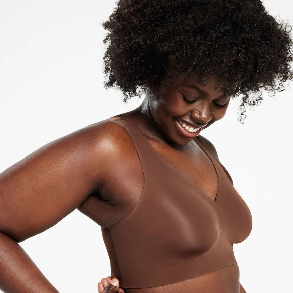 Plunge-ready shaping, seamless support, and a deep neutral that wears like a warm hug.